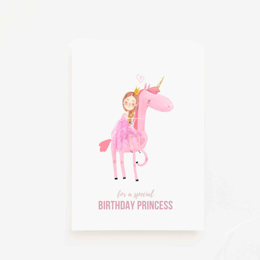 Pink Unicorn Princess Greeting Card & Sticker